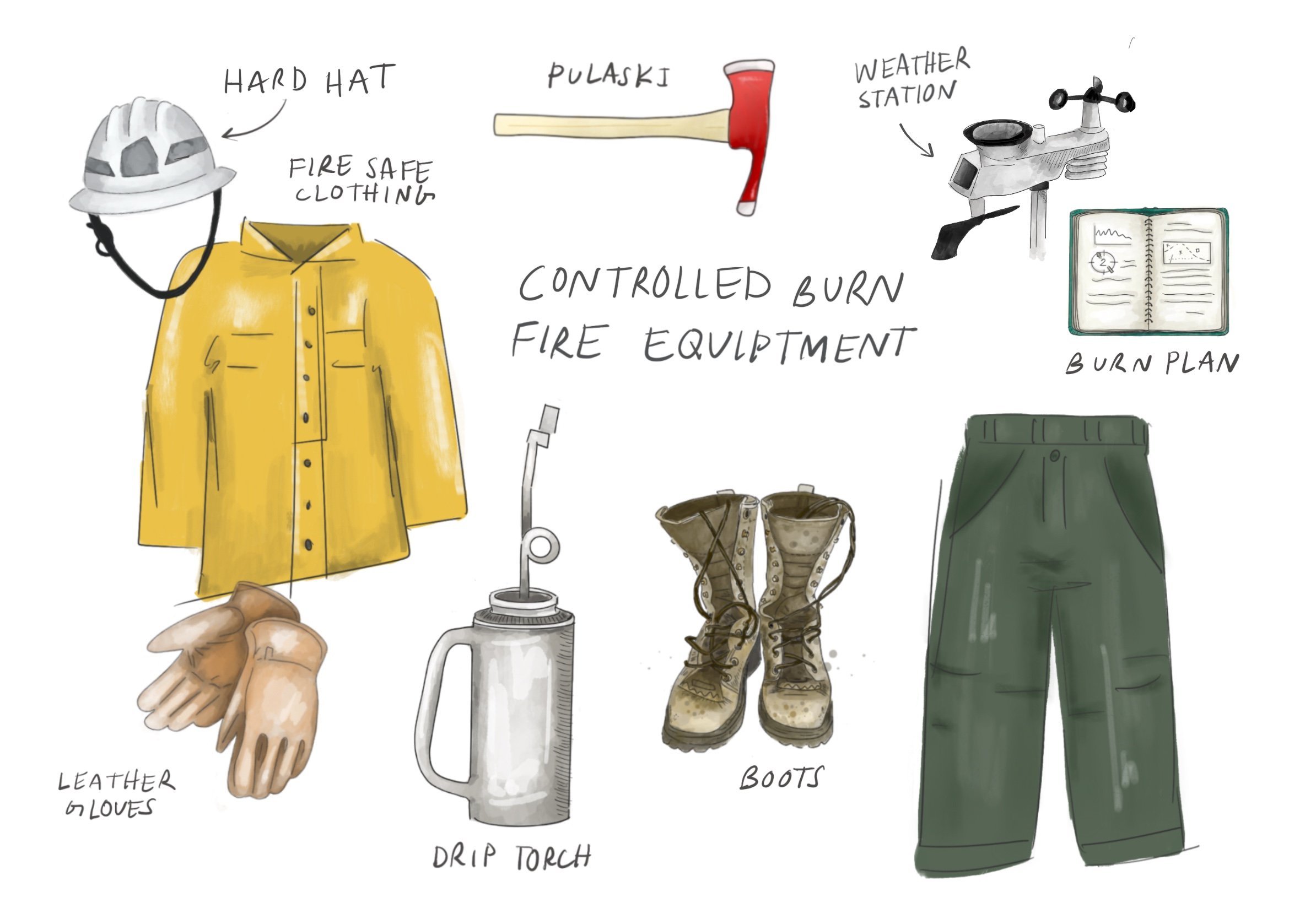 In planning a controlled burn, one of the most important steps is considering what equipment is needed to properly protect the burn crew and contain the fire. Credit: Erica Sloniker/TNC